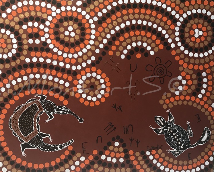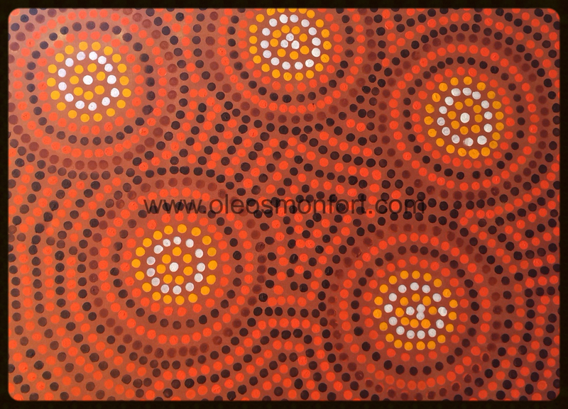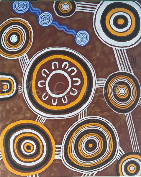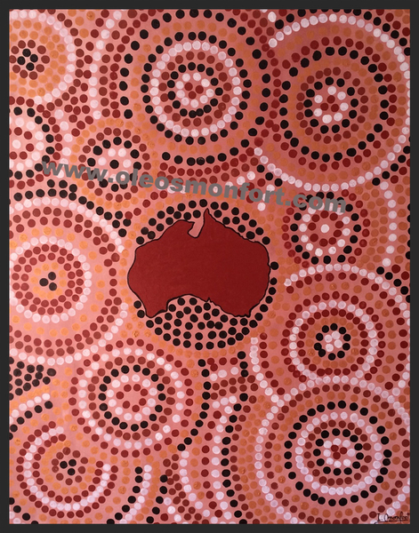 Australia produce un género de pintura del paisaje aéreo, a menudo llamado simplemente "country" Es un tipo de mapa o vista aérea del paisaje del desierto, a menudo creado para contar un cuento o
